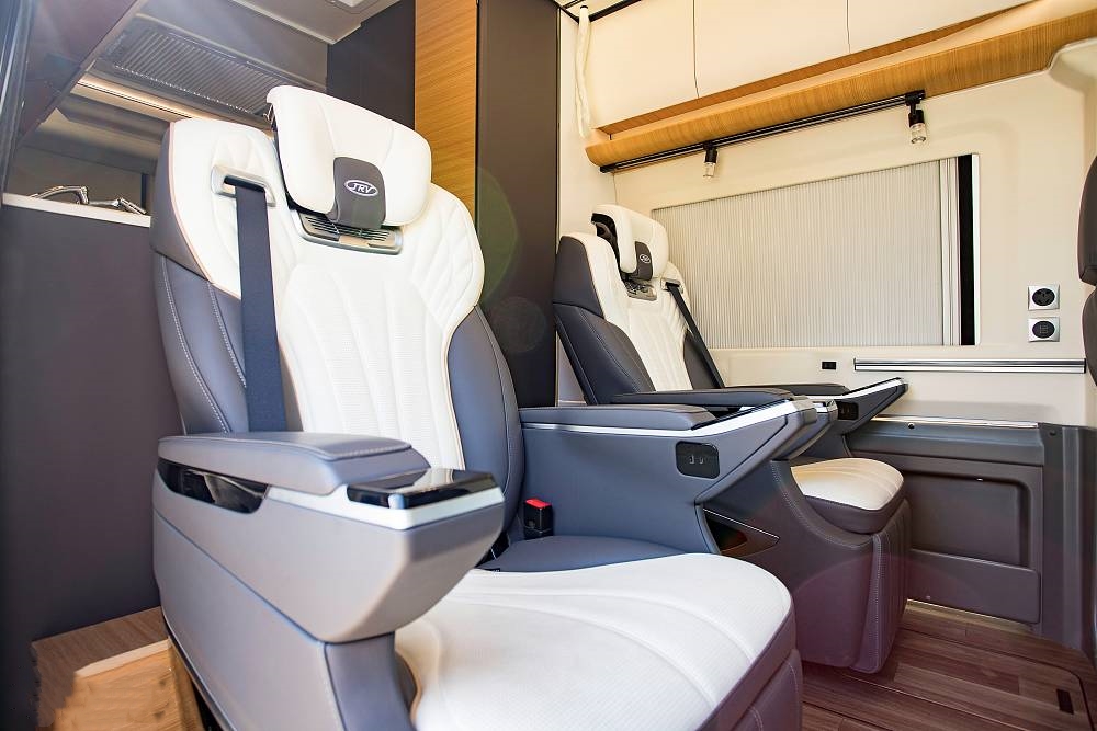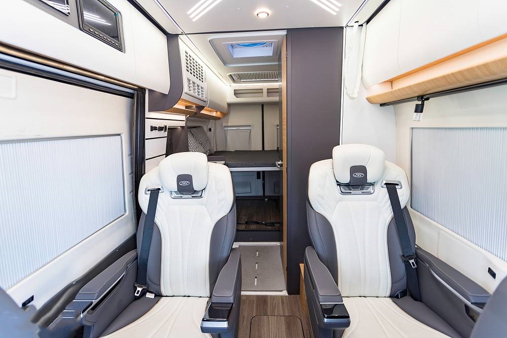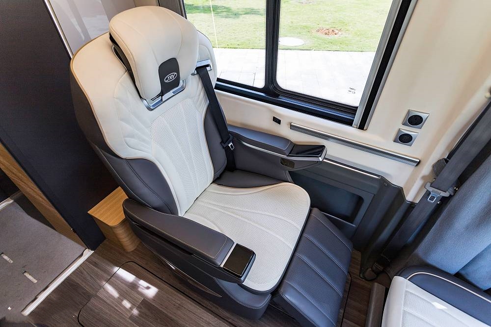 顯眼的雙聯(lián)式中控大屏是中控臺的絕對亮點,支持多媒體播放和導(dǎo)航功能,其余配備電動電加熱后視鏡、主副駕安全氣囊、倒車影像+倒車雷達、四路監(jiān)控、流媒體后視鏡、ESP、定速巡航、自動大燈、自動雨刮、胎壓監(jiān)測系統(tǒng)、多功能方向盤等豐富的輔助駕駛功能,提高了行車安全性和便利性。主副駕駛座椅均采用商務(wù)座椅風(fēng)格,座椅表面由超纖包覆,乘坐舒適感頗佳,主副駕駛均可向后旋轉(zhuǎn),方便與后排座椅組成對卡座布局。