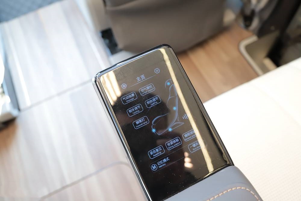 拉開車門就是兩張藍白雙拼航空級獨立座椅,配備座椅記憶、獨立調(diào)節(jié)頭枕、腰靠以及腿托,同時加熱、通風(fēng)和按摩功能也是一應(yīng)俱全。座椅后方留有虛擬墻功能,無論座椅如何運動都不會抵靠后部家具。
