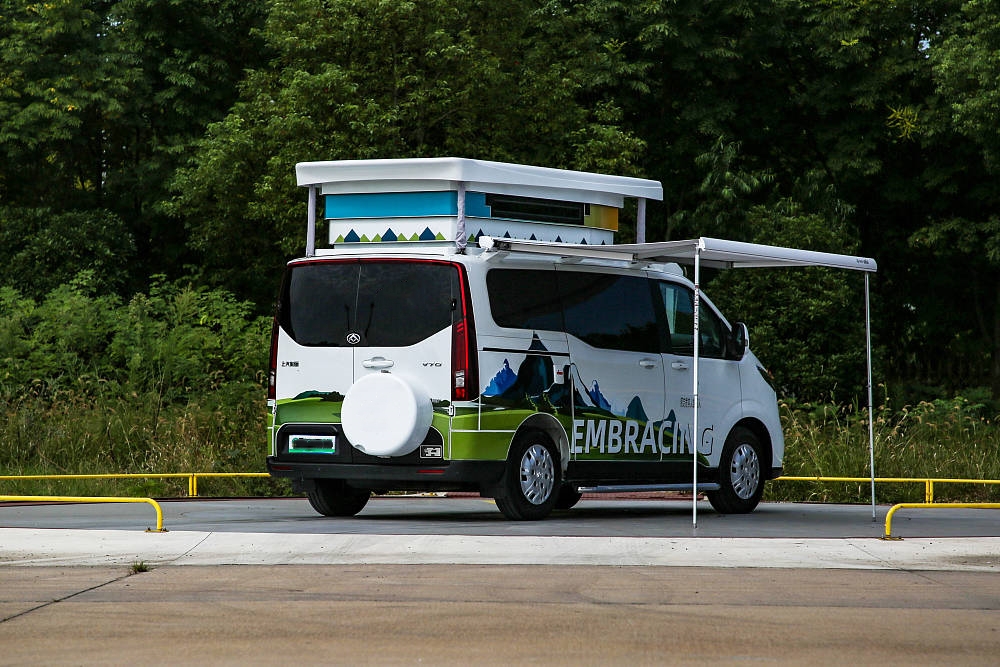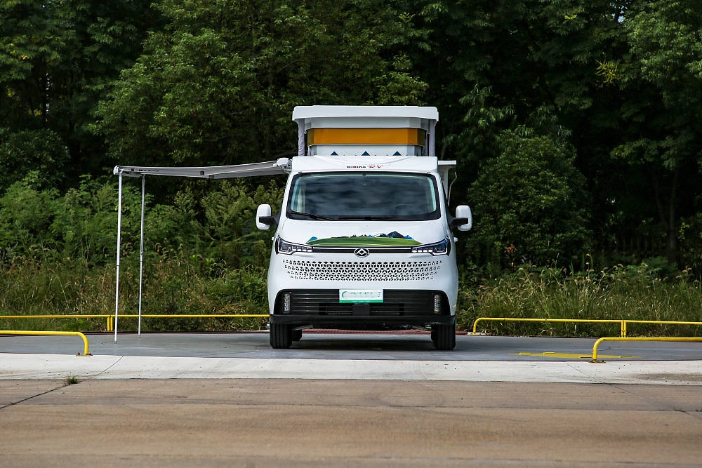在外觀設計上,新車采用類似新能源車型的中網造型,兩側大燈和尾燈均為LED光源,定制的拉花造型突出露營風。