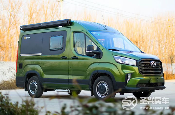 這款房車底盤來自大通V90短軸,整車尺寸長寬高:5180×2062×2655(mm),車長只有5.18米,屬于短軸車,搭載2.0T柴油發動機,最大功率110KW,峰值扭矩375N?m,車身短而動力夠強。