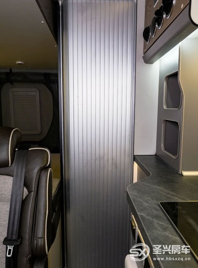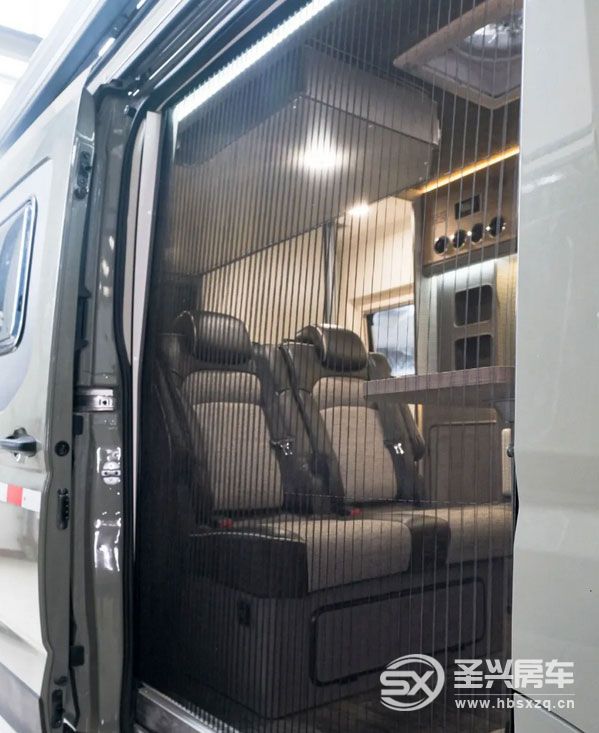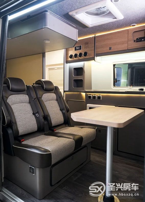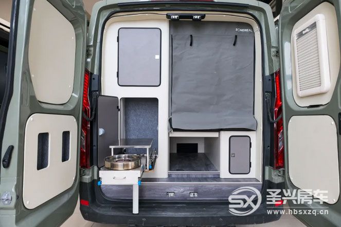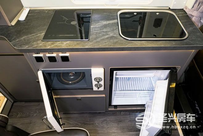因為空間有限,想要寬敞的空間合理的設計,這款車將會客區、室內廚房區、戶外廚房、儲物柜的空間進行了合理的融合,并呈現出舒適的審美設計。