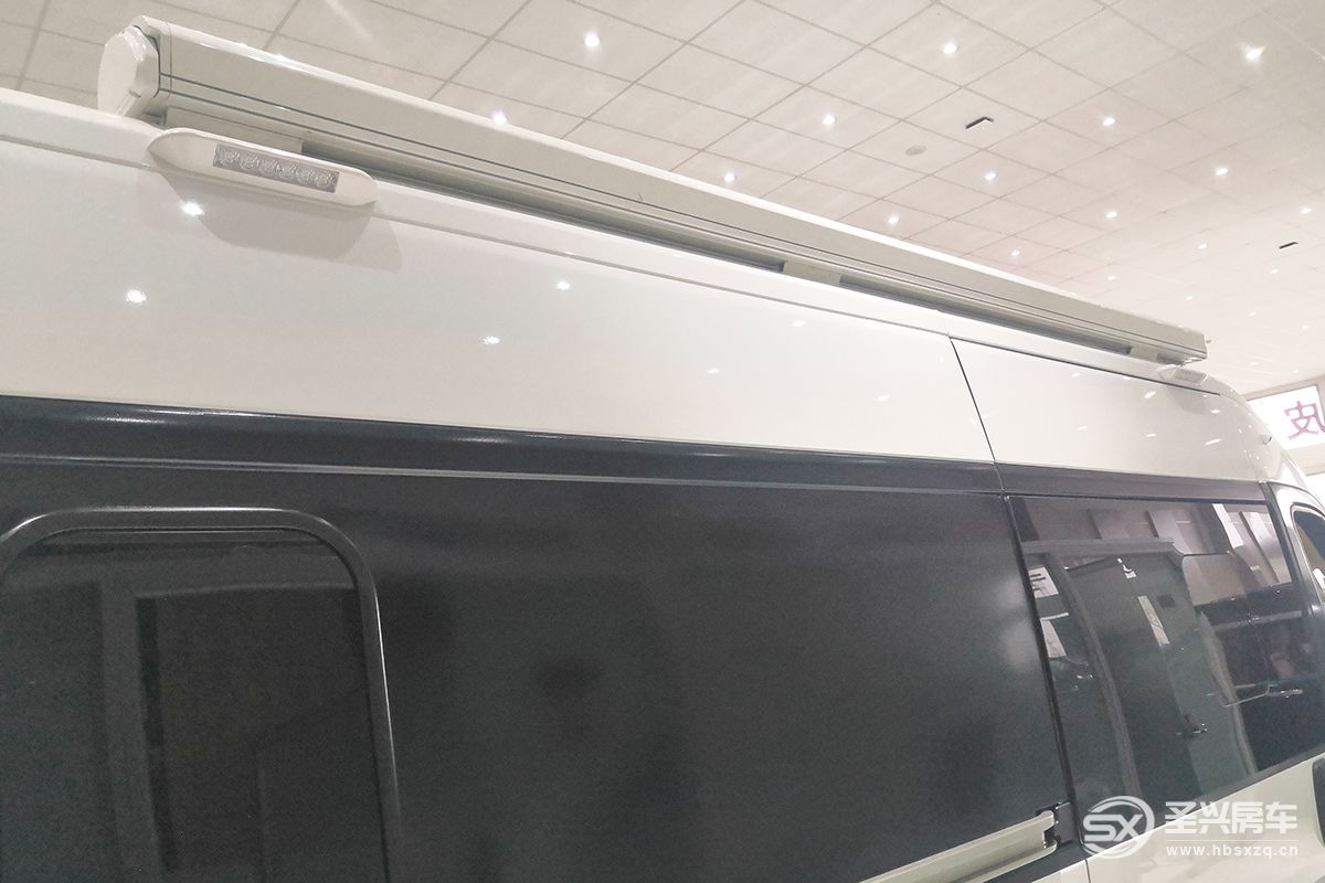 在車外配置方面,車頭配有頂部照明燈,車側(cè)裝有戶外遮陽棚、注水口、市電接口,車尾配備了戶外爬梯,廂體底部是排污管道,這些都需要通過廠商自行改動,方便用戶檢修頂部設(shè)備或者放置行李。