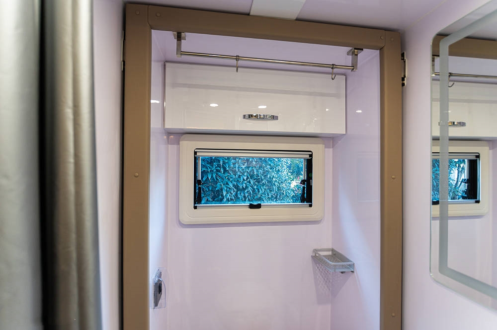 采用專利可伸縮側拓展衛浴間,相比于固定式衛浴區,這種伸縮結構無疑在防水防潮等問題上更具難度,也從側面印證了廠家在結構設計。密封以及制造精度上的領先優勢與豐富經驗。