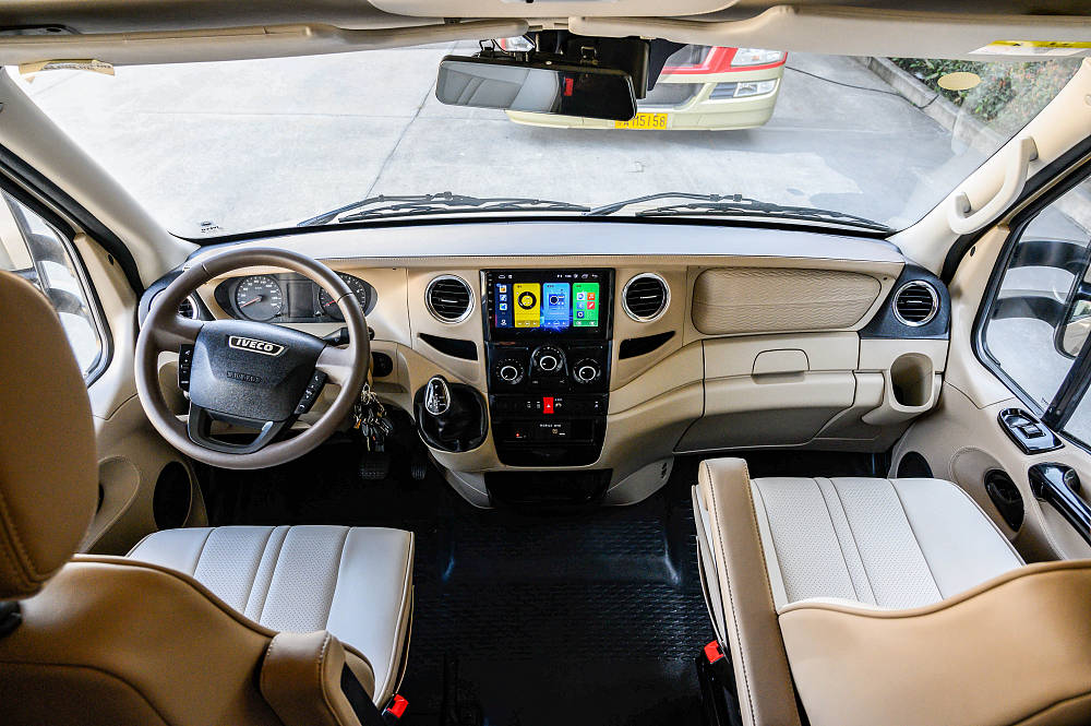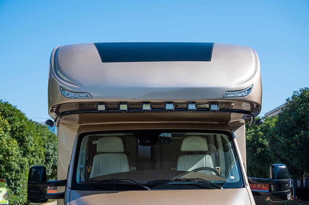 主副駕座椅均配備了懸浮座椅減緩長途駕駛疲勞,駕駛輔助方便配置完備,配有ABS防抱死系統、四輪盤式剎車、倒車影像+行車后視監控等,為駕駛提供了全面且可靠的保障,使房車旅行變得更加安心舒暢。