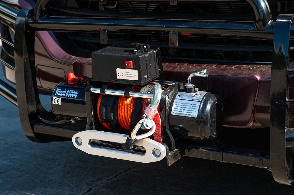 粗壯的車頭保險杠搭配碩大的8500磅電動絞盤,無時無刻不在彰顯整車力量感,在野外惡劣的環境中,如沙漠、沼澤、泥濘、雪地等,更能夠幫助塌陷車輛脫離困境。