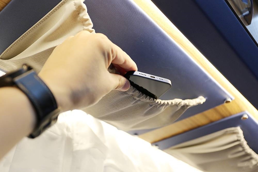整個生活區分布的儲物空間多達20余處,除了常規的吊柜儲物格、鏤空儲物格以外,還加裝了一些可以提升精致感的小網兜,出行中攜帶的電源線是我們最不容易收納的,放到網兜里面非常合適。
