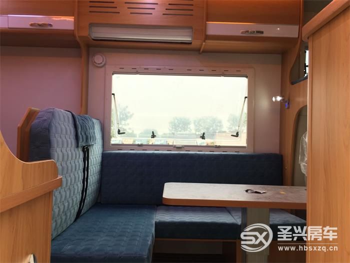 打開電動(dòng)踏步,進(jìn)入會(huì)客區(qū),會(huì)客區(qū)采用了L型卡座設(shè)計(jì),中間搭配升降餐桌。沙發(fā)采用了豪華布藝設(shè)計(jì),盡顯高端。在前方配備了32寸網(wǎng)絡(luò)液晶電視,讓您在旅途中也不耽誤追劇。