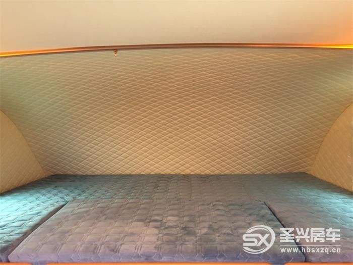 休息區(qū)在車內(nèi)共設(shè)有三處:前置額頭雙人床、后置尾部雙人床、會(huì)客區(qū)拼接雙人床。設(shè)有6臥可供休息。同時(shí)配備了行車空調(diào)、駐車空調(diào)、12V插座、閱讀燈等配置。