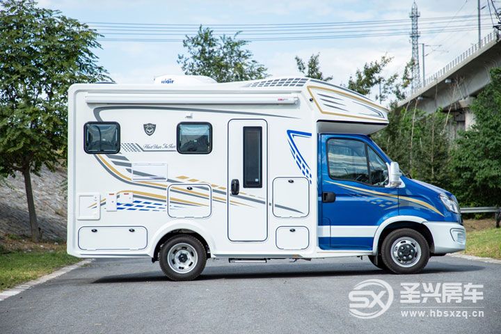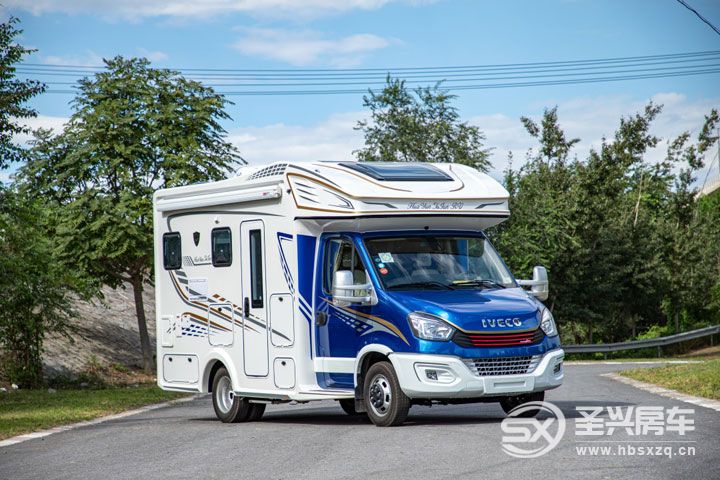 帥氣的外觀就是很多車友對其的一印象。時尚的小額頭造型與依維柯英俊的面孔搭配健美的身材一樣讓人著迷,寶藍色的車頭與科幻風的車身拉花配色更是錦上添花。外觀已如此用心,下面就一起了解這臺房車的細節。