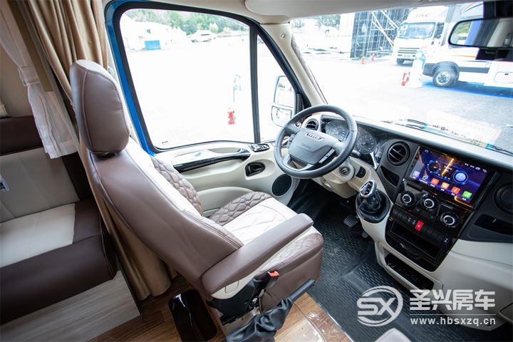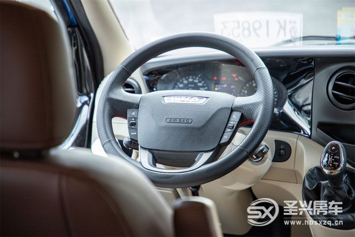 駕駛艙保留了依維柯原來的樣式沒有過多的進行改裝,頗具科技風的設計感和卓越的配置與上裝部分相得益彰。3.0T的柴油發動機與8AT手動變速箱提供了強勁動力的同時,在穩定性上表現更是讓人驚艷。
