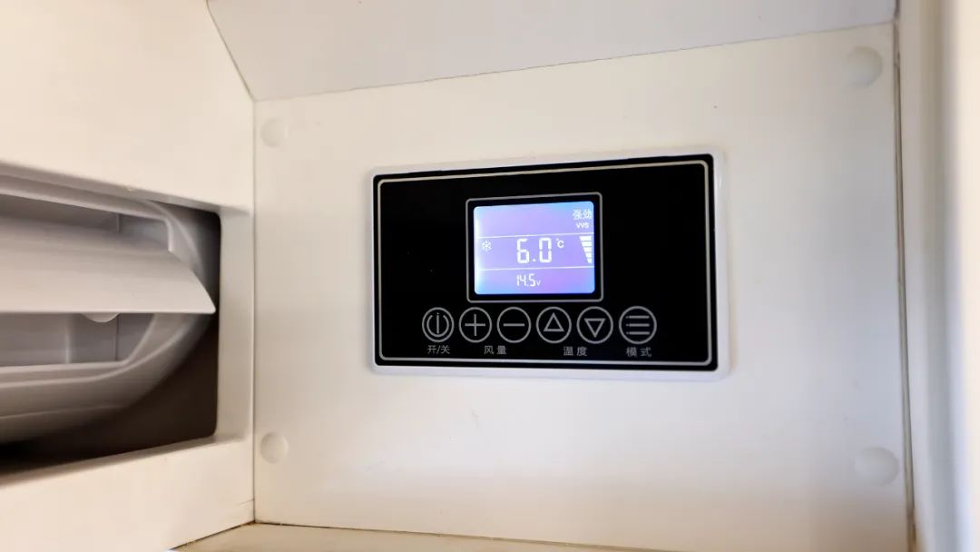 駕駛室偏后位置配備了一款12V直流空調(diào),出風(fēng)口風(fēng)向直接對著后方生活區(qū),由于空調(diào)出風(fēng)口距離后方床位還有一定的距離,用戶不用擔(dān)心空調(diào)直吹帶來的不適。