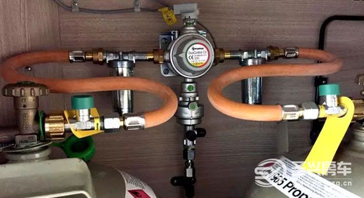 上圖是房車燃氣系統的管路示意圖,可以看到氣壓調節器的作用是非常重要的,從氣罐出來的氣體必須先連接到氣壓調節器,通過氣壓調節器之后再分配,然后輸送到各個使用燃氣設備的端口,所以燃氣調節器就像是一個忠誠的衛士一樣,始終在一線站崗。