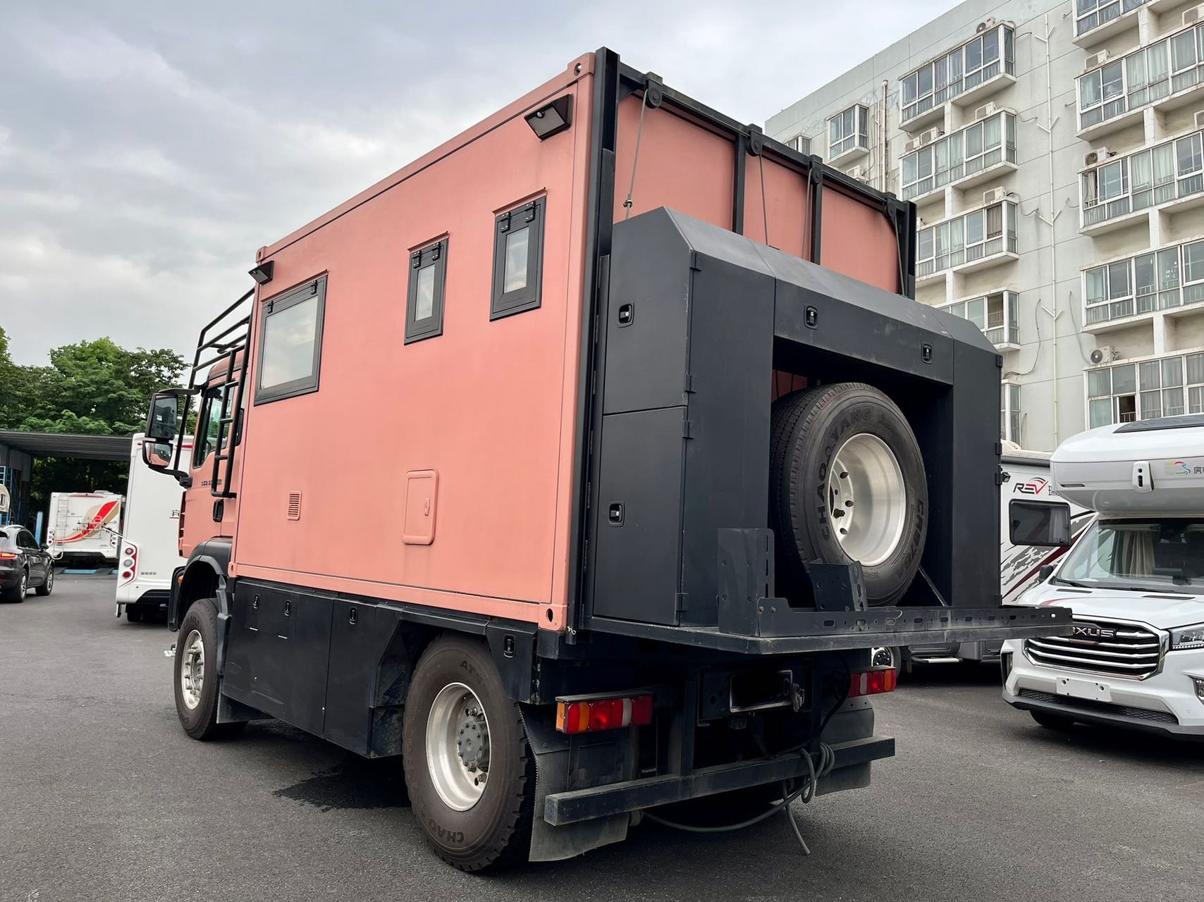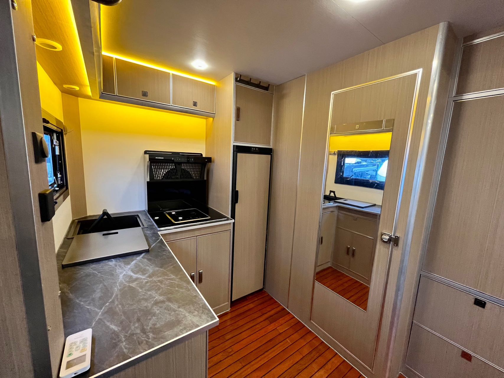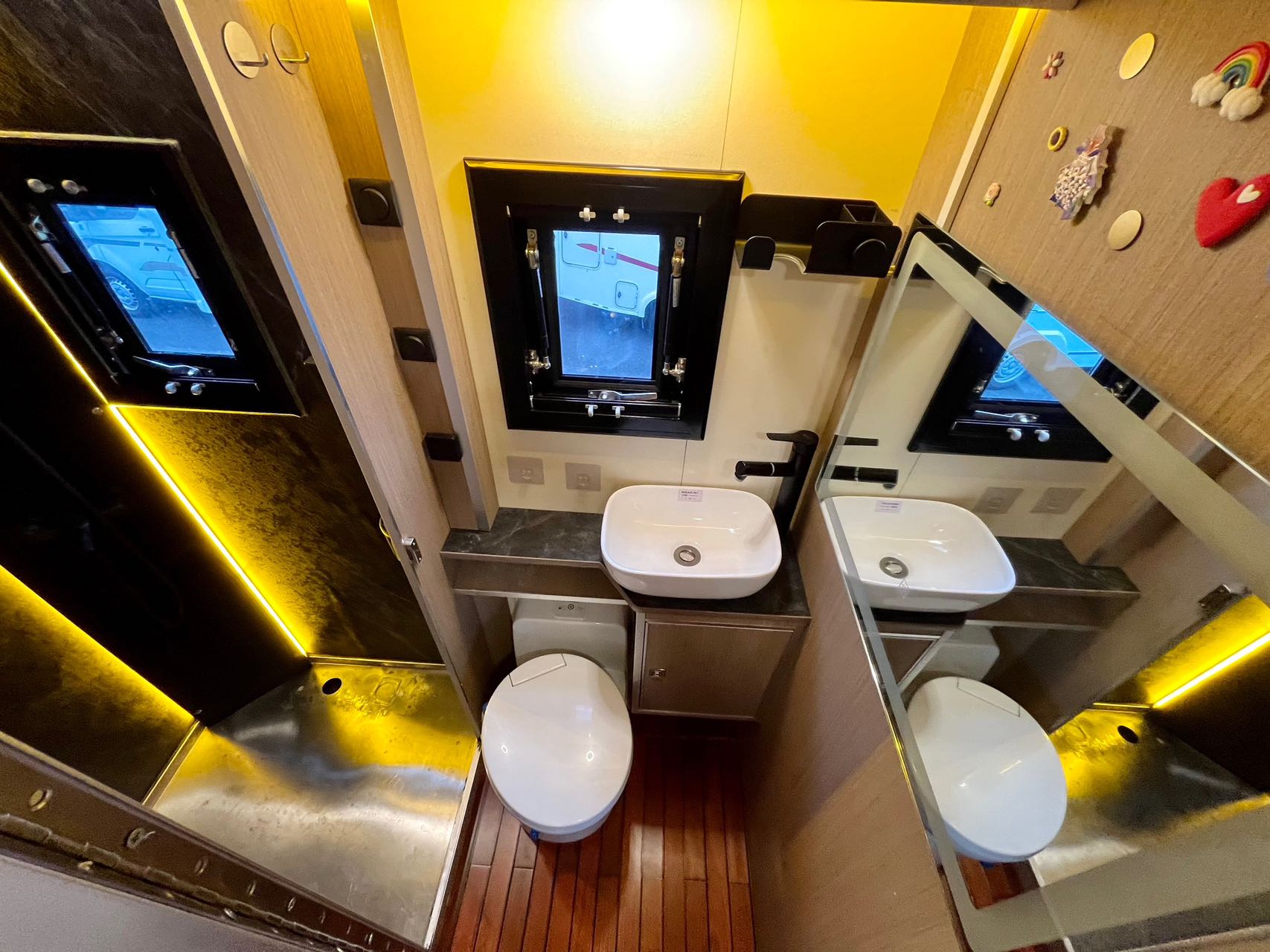 【水電配置】:2個3000W逆變器,24V800Ah鋰電池,1980W太陽能,500L清水箱,100L灰水箱