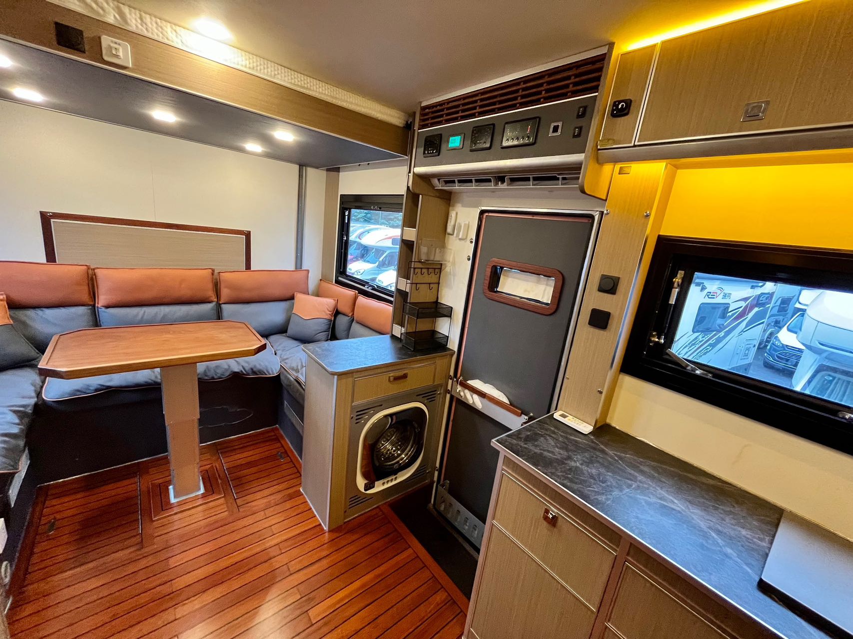 【電器配置】:韓國大宇3KG洗衣機,美的家用變頻空調,集成灶具,嵌入式水池,152L房車專用冰箱,電熱水器,燃油暖風