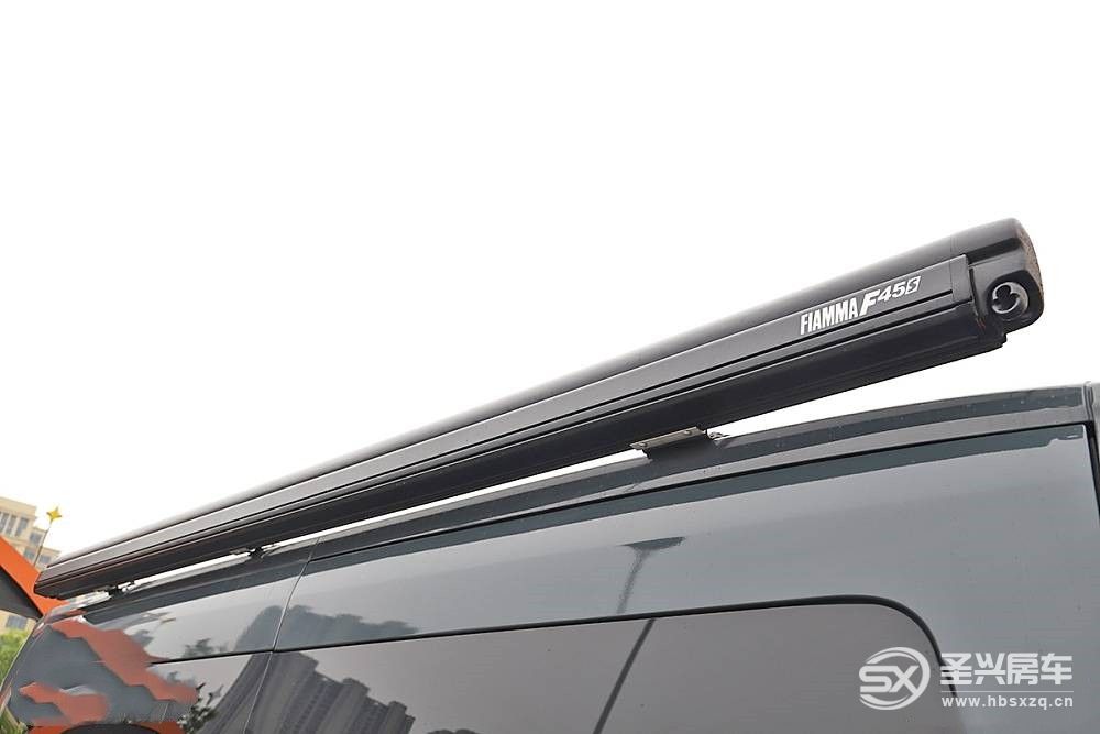 車身右側(cè)配有菲亞馬4.5米戶外遮陽棚,在副駕駛車門上方還設(shè)有戶外照明燈。