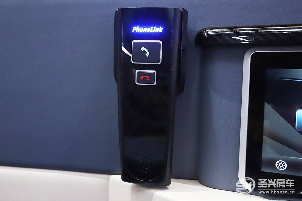 生活區(qū)與駕駛室通過屏障隔開,中間位置既是通艙窗口,升降電視也在該區(qū)域,兩側(cè)配備包括低音、中音、高音等多組揚聲器,可為車內(nèi)帶來更高級的音樂質(zhì)感。