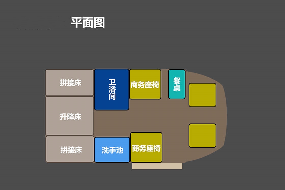 左側(cè)商務(wù)座椅后方是獨立衛(wèi)浴間,內(nèi)部采用一體式ABS吸塑工藝,具有更好的防水性,內(nèi)部配置包括固定馬桶、淋浴花灑、毛巾桿、浴室鏡、衛(wèi)浴簾等,翻轉(zhuǎn)洗手池還可以節(jié)省更多內(nèi)部空間。