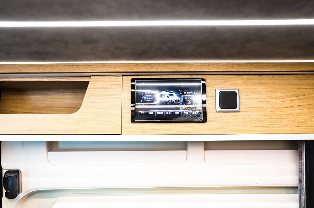 奔馳斯賓特(Sprinter)的車內(nèi)中控模塊設(shè)置在車門上方,需要觸控操作燈光、設(shè)備、暖風等重要設(shè)備,屏幕也能顯示更多水/電信息。除此之外,新車匹配了車輛智能管控平臺,手機遠程就能控制/查看一些車輛功能。水電方面,搭載160L凈水箱、55L灰水箱,48V 200Ah房車專用鋰電池將為車內(nèi)提供電能,另外,交流充電、新能源直流快充、400W太陽能充電、48V雙發(fā)電可為鋰電進一步補給能源。