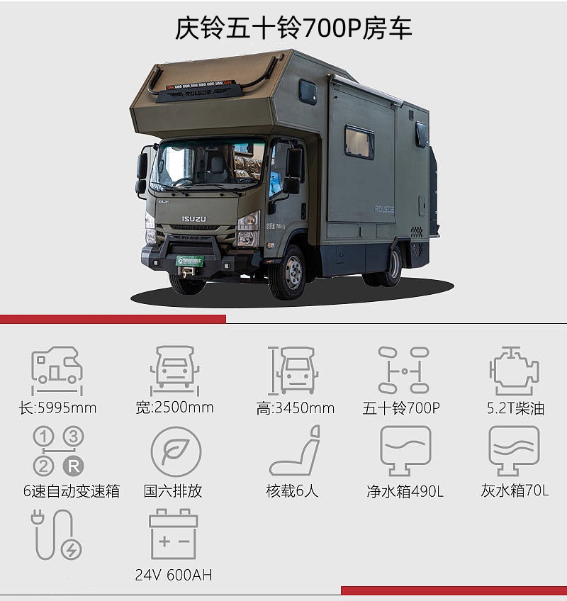 慶鈴五十鈴700P是一款適合戶外遠(yuǎn)行的高性能中卡房車,它擁有強(qiáng)大的動力系統(tǒng),寬敞的內(nèi)部空間,以及豐富的配置娛樂設(shè)施。無論是在山林、沙漠、草原,還是在雪地、沼澤、湖泊,都能輕松抵達(dá)且駐足停留。如果你是一個(gè)熱愛冒險(xiǎn)和挑戰(zhàn)的人,那么五十鈴700P房車就是理想之選。它不僅能滿足戶外豐富多樣的生活需求,還能輕松愜意的感受自然魅力和人生樂趣,讓你的旅行更加精彩!