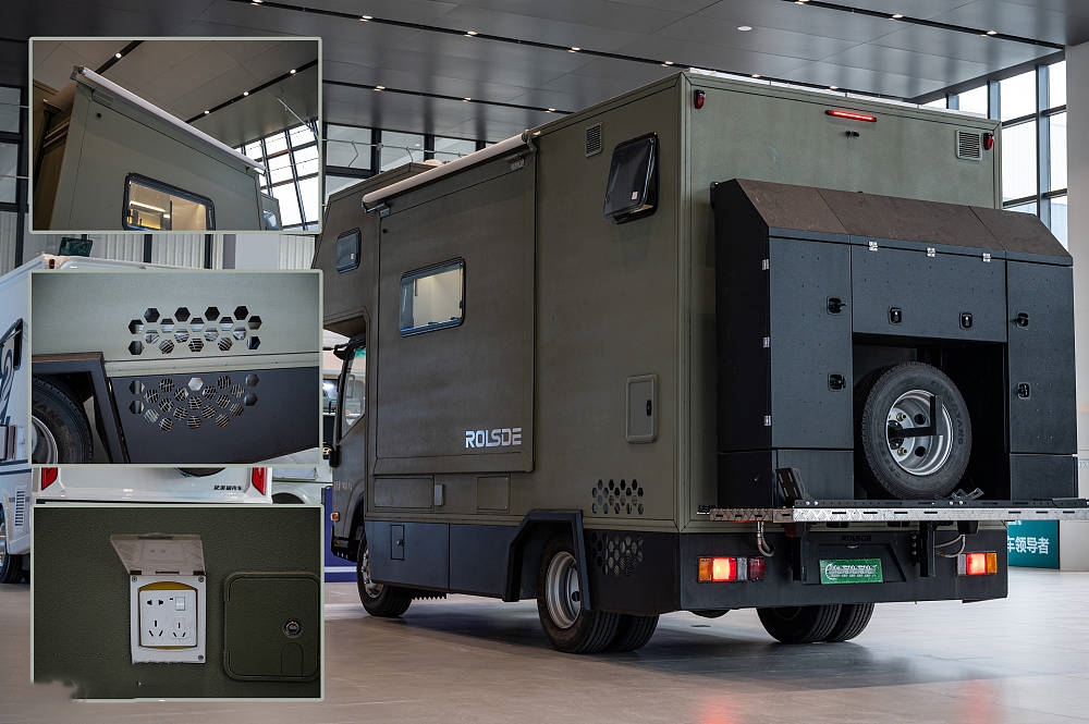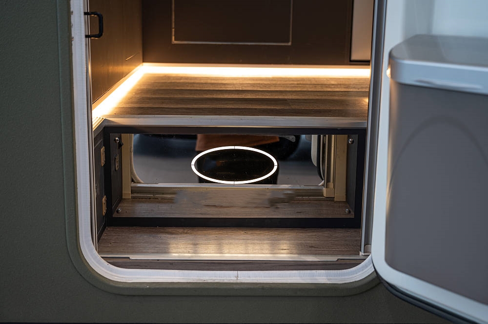 車身右側(cè)上方是4M手動遮陽棚,并有完整的戶外廚房區(qū),包括戶外桌板、戶外柴油灶、戶外水龍頭、220V戶外電源插座,諸多功能保障日常烹飪自由。除標(biāo)準(zhǔn)配置外,豐富的選配項(xiàng)目還可以滿足用戶個(gè)性化定制需求,隨時(shí)隨刻讓您享受輕松自在的戶外生活。