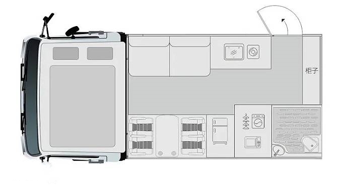 從前到后的布局依次為駕駛室+額頭床、會客區(qū)+沙發(fā)床、廚房區(qū)以及衛(wèi)浴區(qū),布局形式充分利用大尺度車廂空間,整車內(nèi)部空間寬敞舒適,采用后上門單拓展的布局方式,可滿足六人在車內(nèi)同時(shí)休息各項(xiàng)功能區(qū)的劃分也比較規(guī)整。