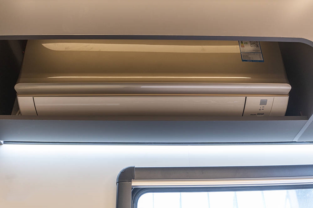 其中一段吊柜中內(nèi)嵌有一臺大金1.5匹變頻空調(diào),擁有獨(dú)特的風(fēng)道設(shè)計(jì)和靜音技術(shù),可快速安靜的調(diào)控車內(nèi)溫度。