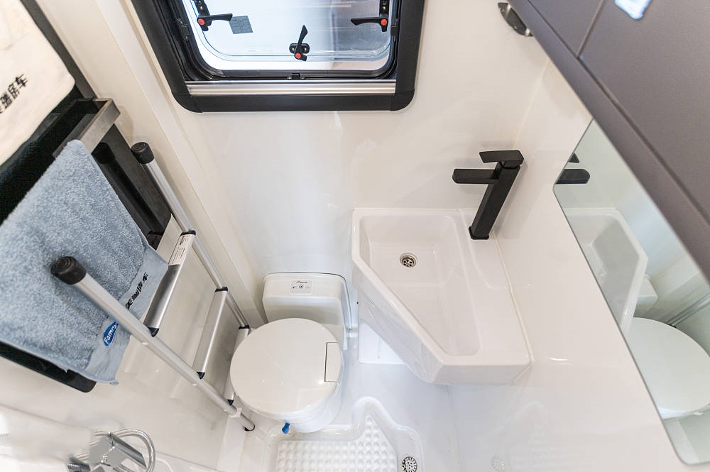 衛(wèi)浴區(qū)為常見的獨(dú)立式干濕一體布局,整體使用吸塑防水處理,能夠有效減少漏水發(fā)霉等情況的發(fā)生,也方便清理打掃。不管是站立洗澡還是使用馬桶都不會感覺空間狹小,衛(wèi)生間內(nèi)部設(shè)施齊全,配備旋轉(zhuǎn)馬桶、洗手池、化妝鏡、淋浴系統(tǒng)、毛巾架、儲物柜等等,滿足了衛(wèi)生間所需的設(shè)施和功能。