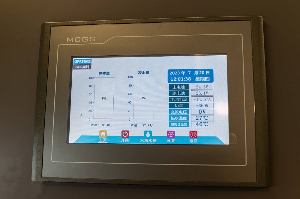 水路方面,自帶490L清水箱(300L+190LPE抑菌保溫水箱)、70L PE灰水箱和50L熱水箱(用于冷卻液能量回收系統(tǒng)),充足的帶水量使得用水焦慮成為過去式。