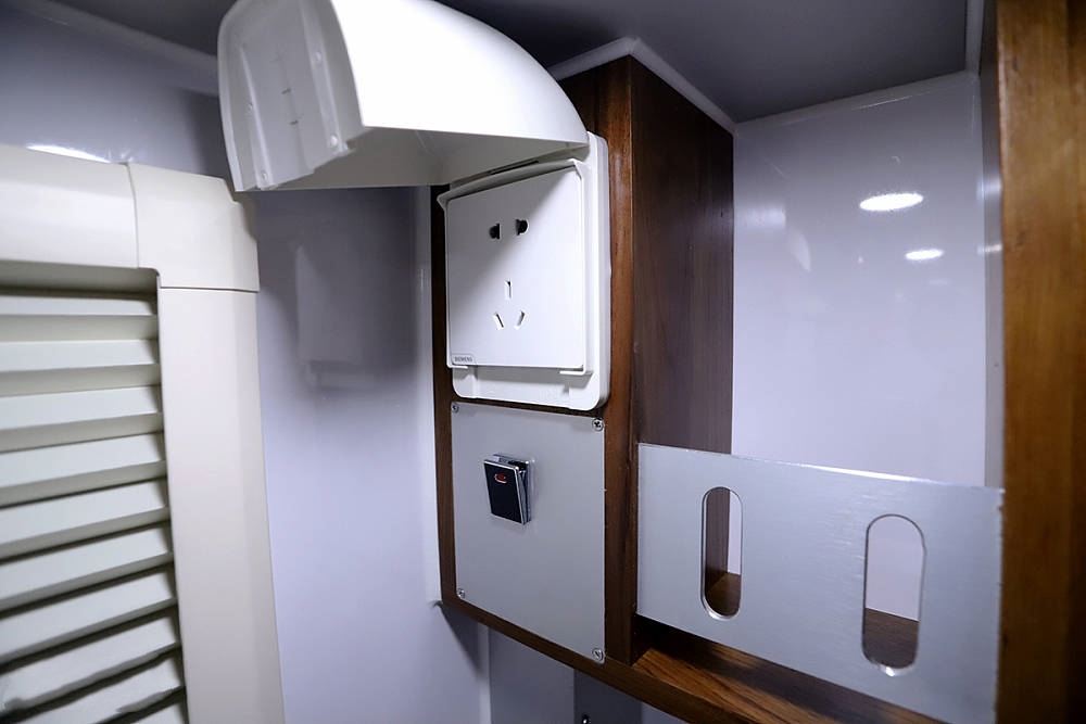 里側角落不經意會發現帶蓋防水充電插座及暖風出風口控制開關,日常生活帶來便利的同時還能保證衛浴空間四季的適宜溫度。