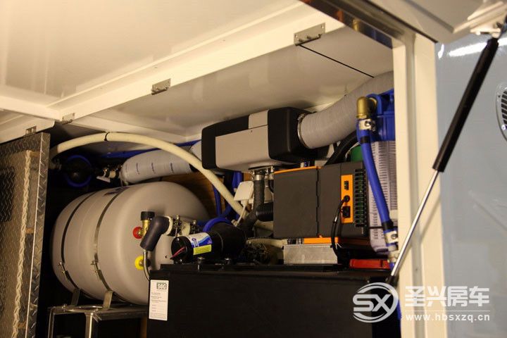 整車配有3個(gè)水箱:一個(gè)清水箱、一個(gè)灰水箱和一個(gè)污水箱。清水箱安裝在產(chǎn)品的前面,灰水箱和污水箱都安裝在后面。水箱位置安排是總設(shè)計(jì)的要求,以確保產(chǎn)品重量達(dá)到最佳平衡。為了保證供水質(zhì)量,水管系統(tǒng)中集成了幾個(gè)過(guò)濾系統(tǒng)。當(dāng)過(guò)濾清水箱中的水時(shí),水從沉淀濾芯通過(guò)。水要經(jīng)過(guò)沉淀、活性碳和紫外線過(guò)濾器后,才能使用,以保證所用水百分百的清澈干凈,安全為最重要。