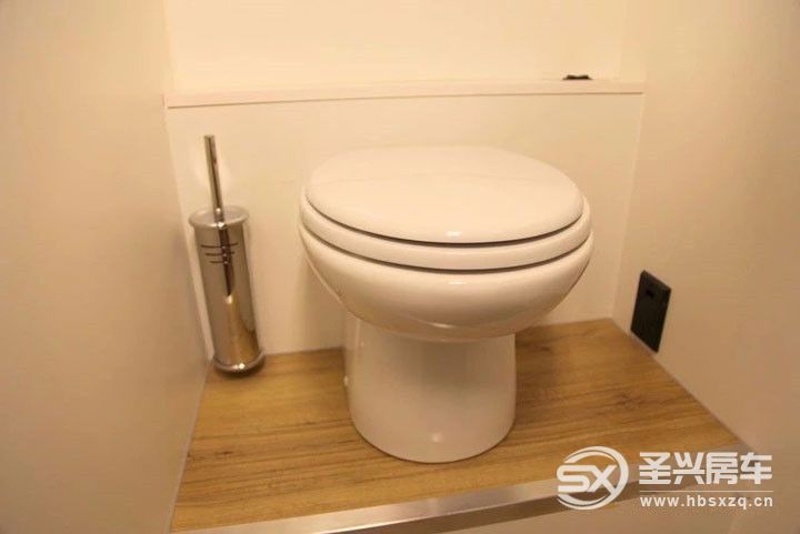 廁所內(nèi)安裝了帶有粉碎機(jī)的電動(dòng)馬桶。此類馬桶用水量少于傳統(tǒng)馬桶。將廢棄物磨碎可以防止堵塞黑水系統(tǒng)。